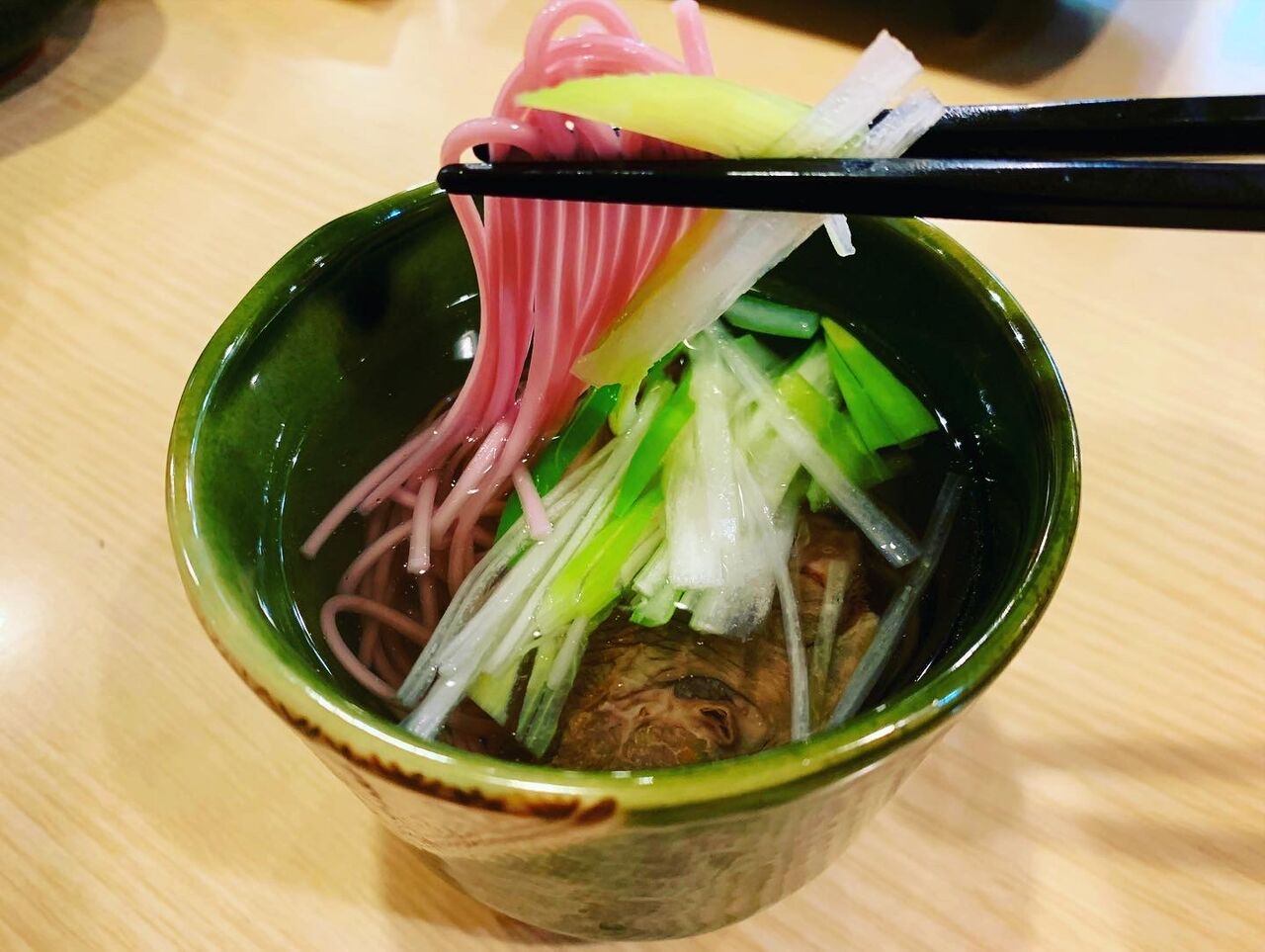 牛たん焼きを注文すると、よく一緒に出てくるテールスープ。テール(牛の尾)の旨味たっぷりで、それだけでも十分美味しいのですが、そこにさっぱりとしたブルーベリーパスタが!永遠に飲み続けられます。