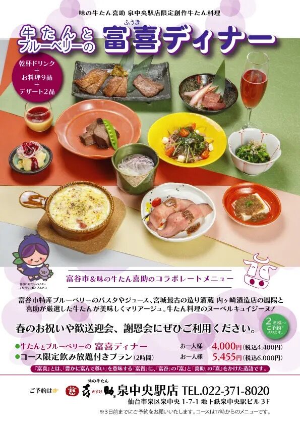 富谷市&味の牛たん喜助コラボレートメニュー「富喜(ふうき)ディナー」