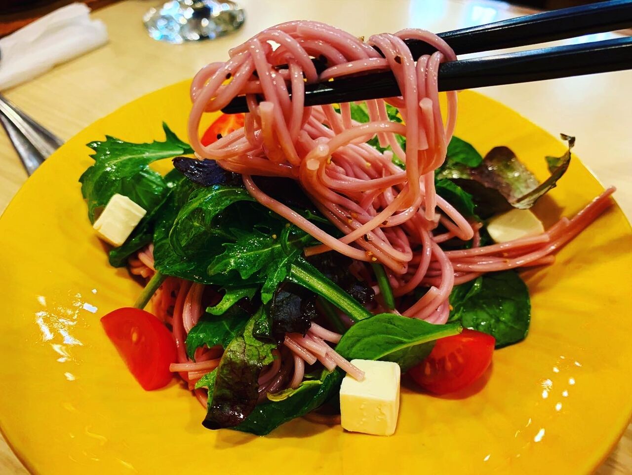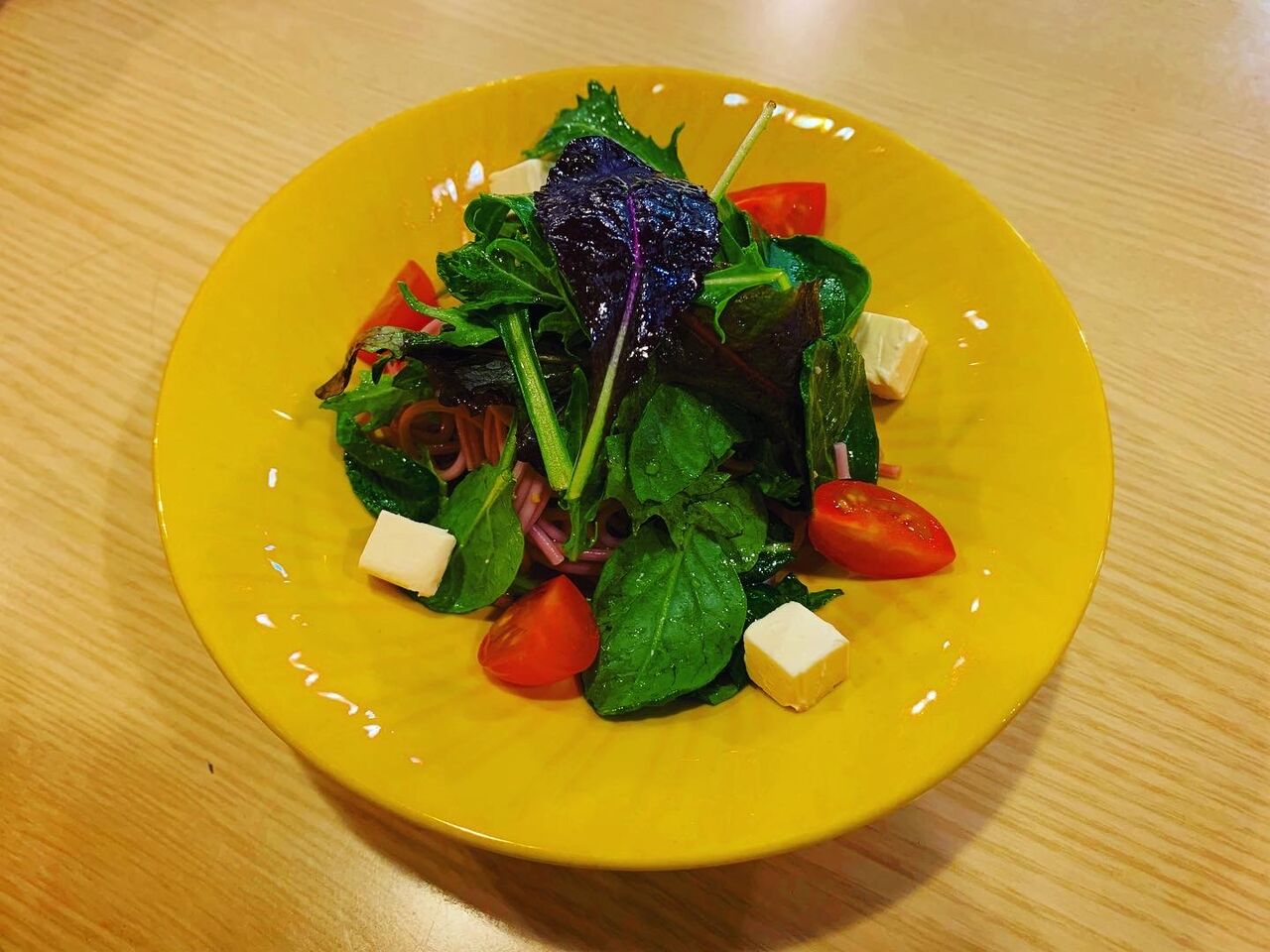 こんな感じで彩りが超いい。ドレッシングは自家製らしく、さっぱりとした味わいとブルーベリーパスタから感じられるほんのりした酸味が最高にマッチしてました。