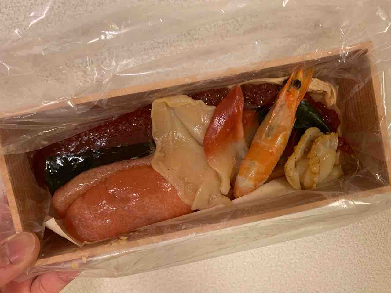 「さしみ粕漬」という名前ですが、今回購入した商品には魚卵なども入っていました。内容はこちら